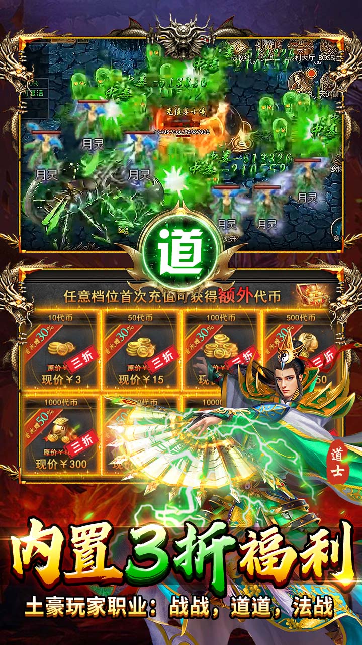 提示 : 1.创角即送时装、暴打策划狗头称号、海量元宝、自动回收、自动拾取。