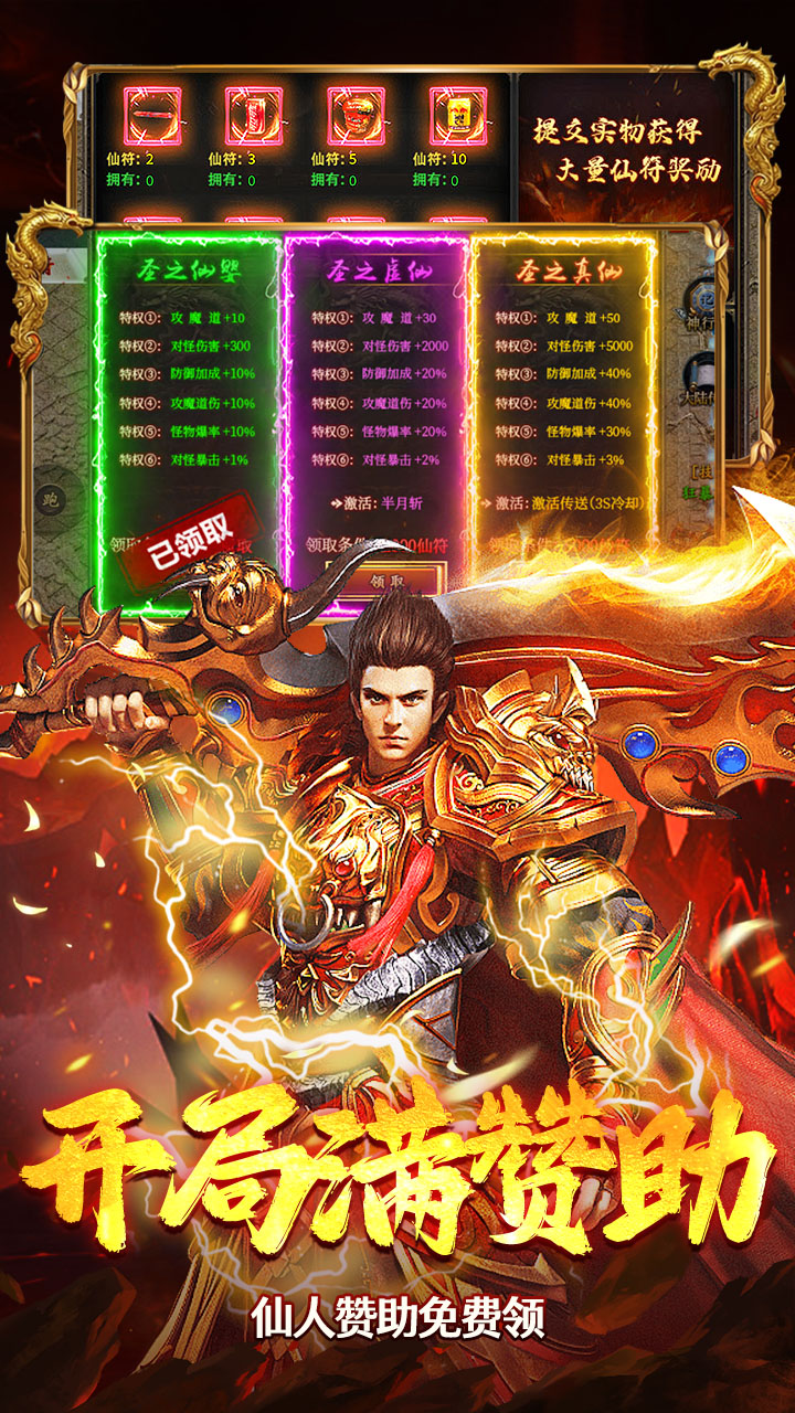 4.仙人赞助:新手任务送圣之仙婴赞助,6大特权属性免费送