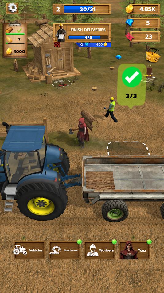 《伐木工司机》将伐木、运输和业务管理融为一体,形成一个令人满意的游戏循环:砍伐、加工、运输和建设。