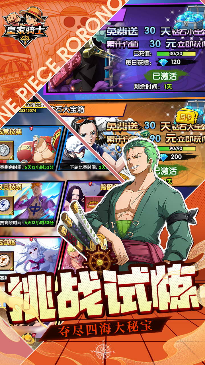 2、开局狂送六星船员【火拳*艾斯】、6480钻石、航海装备套装箱、集结卷轴*100,主线关卡2倍速一键畅玩!