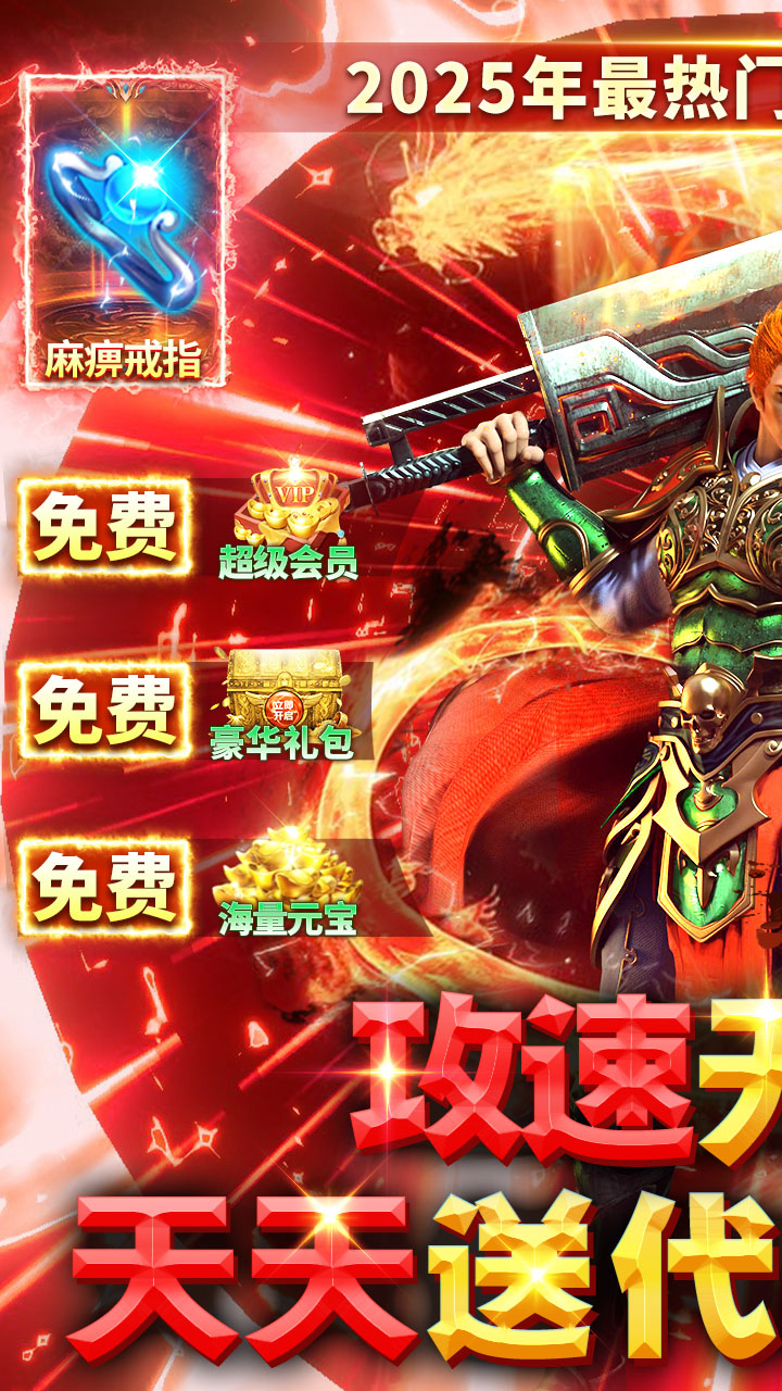 2.上线福利:创角即送麻痹戒指、复活戒指、吸血戒指、回血戒指、全套技能书