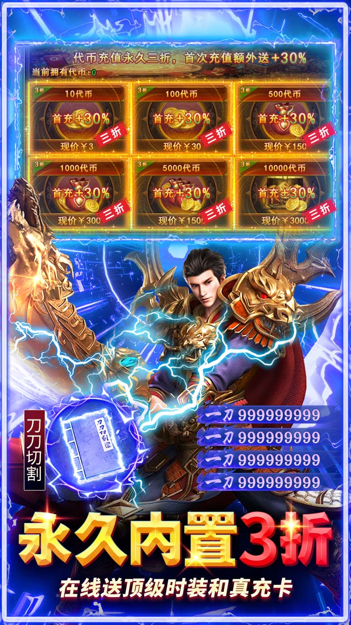 3.免费特权:开局获取范围拾取、自动回收、回城满血,充值永久内置3折特权