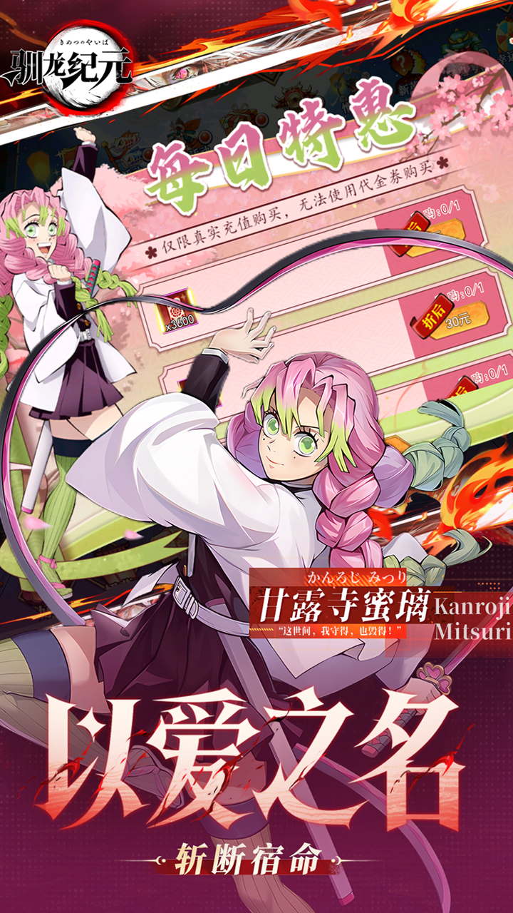 一款以鬼灭题材打造的冒险卡牌手游。故事在鬼舞辻无惨发动的禁忌血鬼术导致时空错乱后,玩家作为一名被“原初之血”选中的失忆者,将与来自各个时间线的柱和十二鬼月集结,在无限的轮回中收集碎片、揭开身世,亲手斩断鬼的宿命。