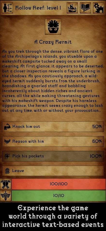 通过引人入胜的文字叙事,探索一个充满魔法、神秘和古老秘密的热带世界。你的每一个选择都将塑造旅程,体验灵感源自《龙与地下城》(DnD)和《开拓者》等经典桌面角色扮演游戏。