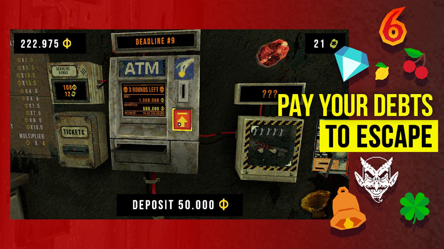 一款 rogue-lite 风格的噩梦老虎机游戏。在债务模拟器中赌上你的性命!