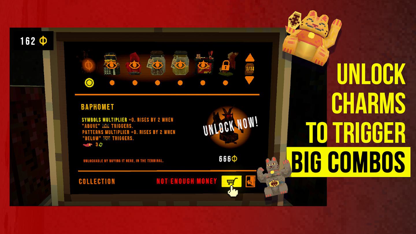 操控老虎机来赚取额外的金币。利用各种奖品和护符来扭转乾坤,触发强大的连击,最终滚雪球般地赢得胜利。打破规则,破解游戏,偿还债务,争取获得重生的机会。