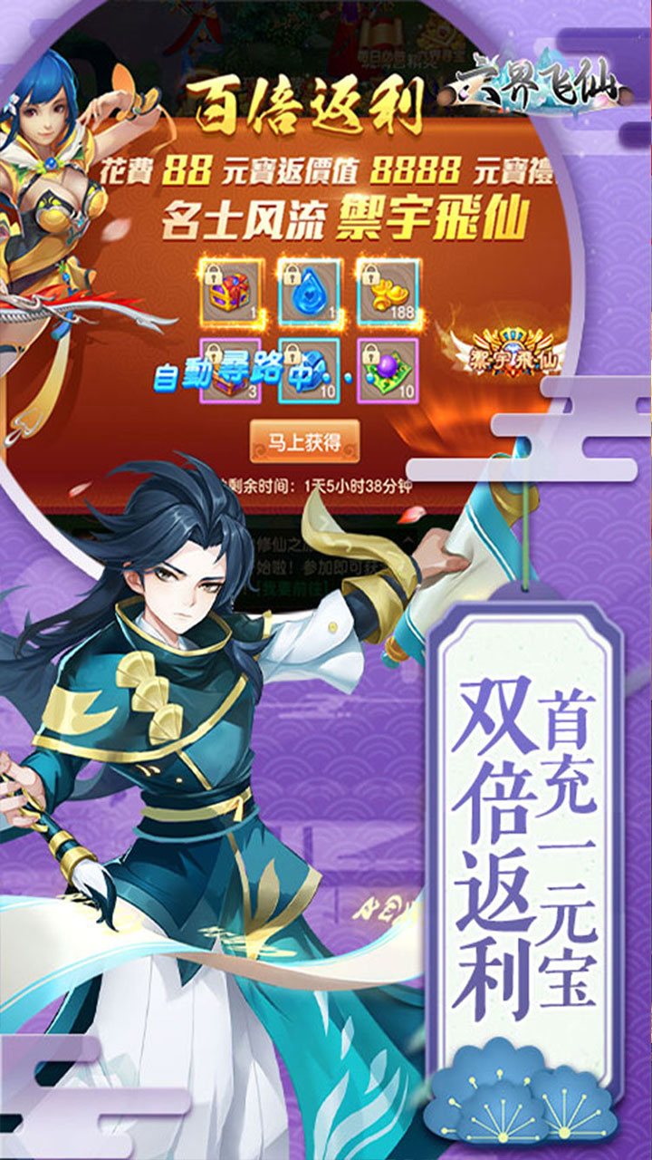 六界异宝*8,顶级乾坤丹*2,橙色诛魔令*4,1万绑定铜钱*5