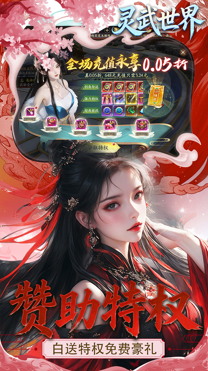 3.创角豪礼:登录直升VIP15,免费赠送战力飙升资源、海量灵玉及炫酷时装!