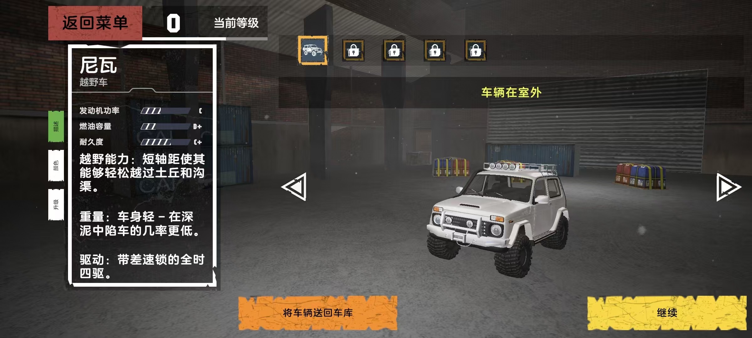 从动力强劲的卡车、坚固耐用的四驱越野车和用途广泛的拖拉机中选择你的座驾。每辆车的操控性、牵引力和性能都各不相同,以适应不同的地形。