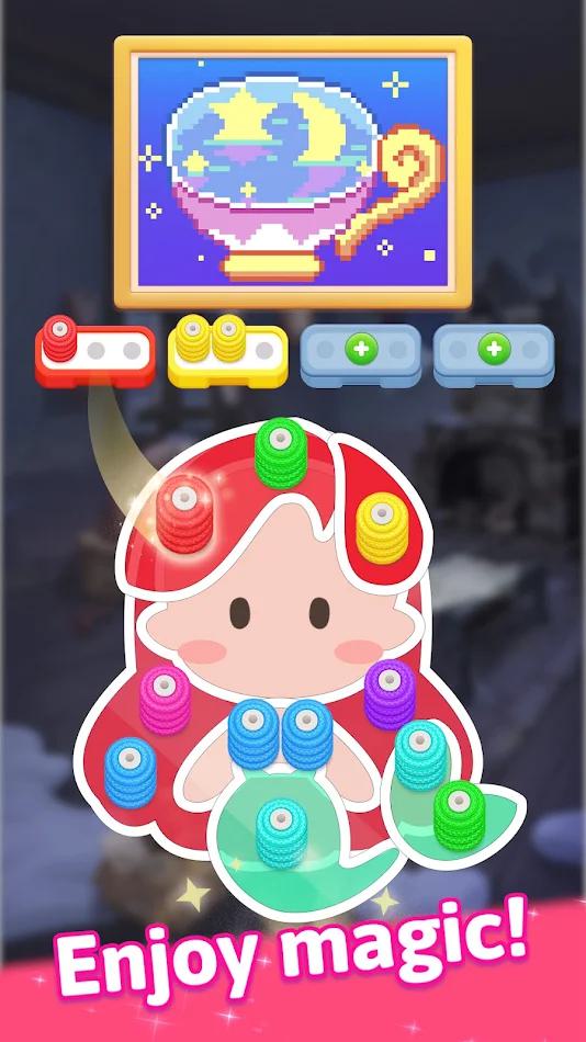 • 沉浸在热门的颜色分类谜题中!你的目标是将缠结的羊毛束按颜色整理到正确的罐子里。