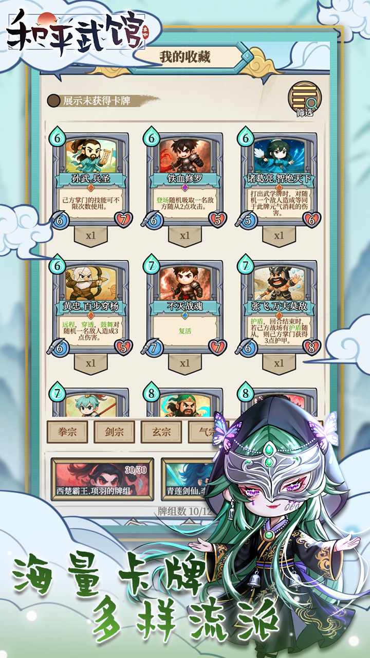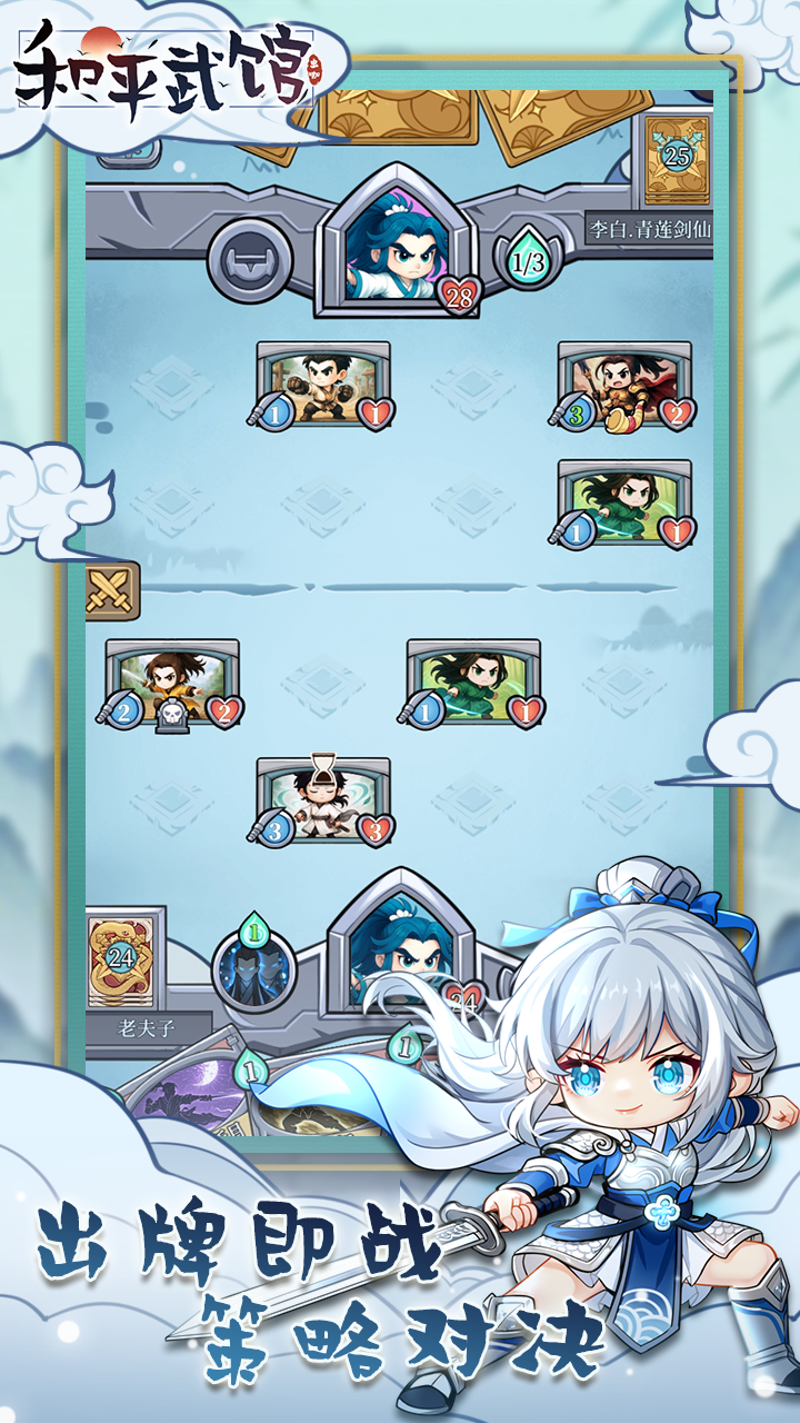 千年武道,五宗并立。拳、剑、玄、气、密——五大门派各擅胜场,传承至今。 在【武馆对决】中,你将化身年轻掌门,与来自天下的高手一决高下。 这里没有单纯的力量之争, 每一场比武,都是战略与智慧的对弈。 善用武学牌组、掌握关键时机,以心制敌,以道胜技。