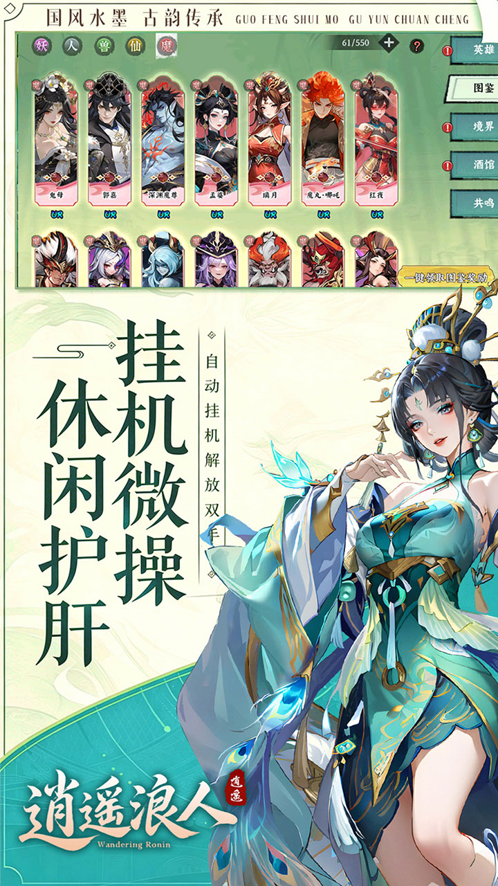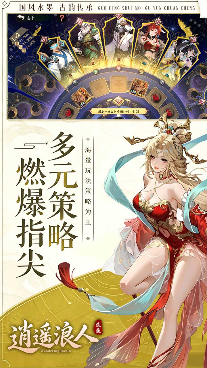 《逍遥浪人》是一款水墨国风策略卡牌手游。在这片充满东方神话色彩的大陆上,你将携手一众耳熟能详的传奇英雄,循着蛛丝马迹揭开尘封之谜,在跌宕剧情中沉浸式领略东方古韵。游戏深度融合策略与操作,多阵容随心搭配,可根据战局灵活组合,在水墨战场施展泼墨般酣畅华丽的连招。探索与奇遇贯穿全程,每一次挑战都将是智慧与勇气的双重试炼。