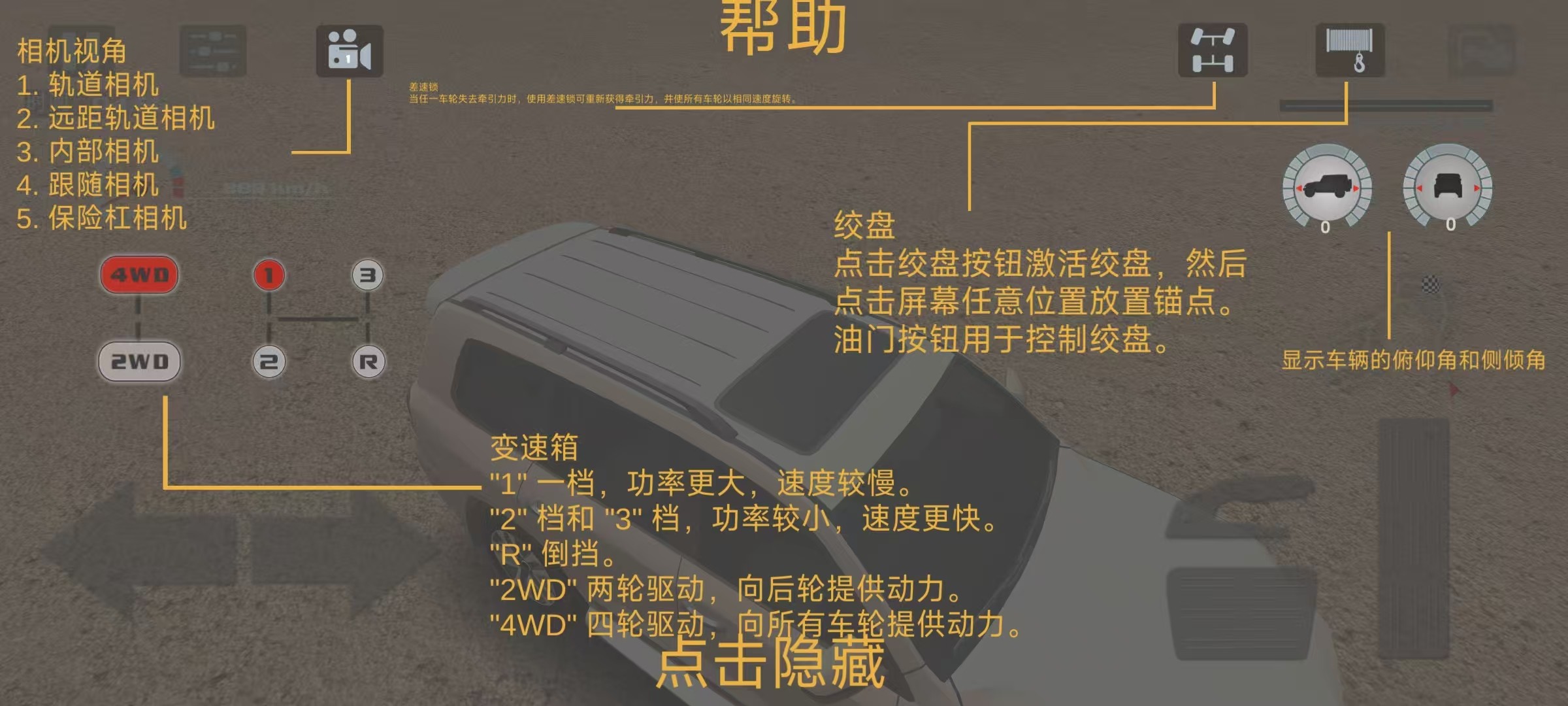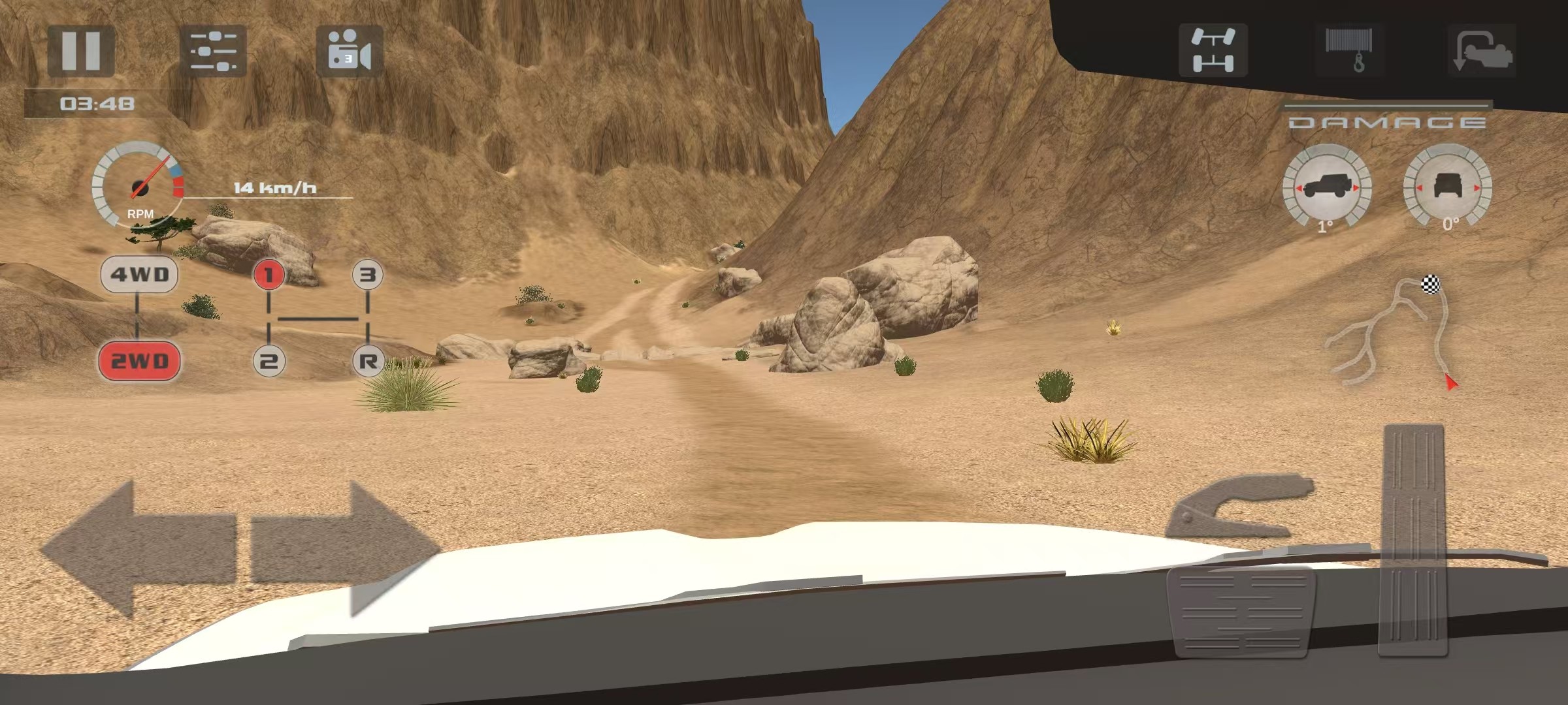 驾驶配备真实悬架和逼真物理效果的 4x4 越野车辆,在充满挑战的沙漠地形上驰骋,需要运用各种真实的越野技巧。逐一完成所有关卡,即可解锁 SUV 和自由驾驶模式地图。对于所有水平的玩家以及热爱真正 4x4 越野驾驶的玩家来说,这都是终极越野体验。
