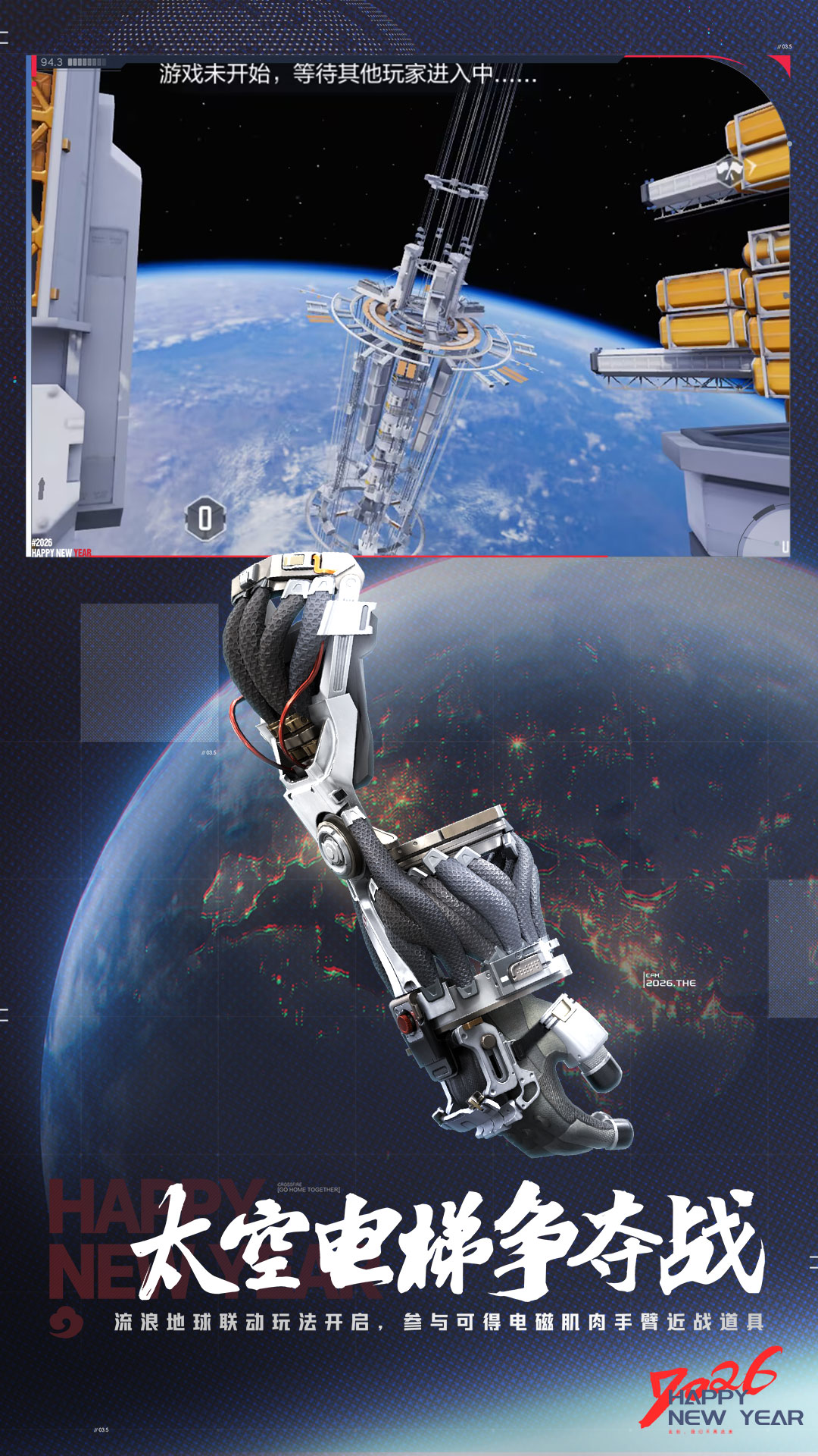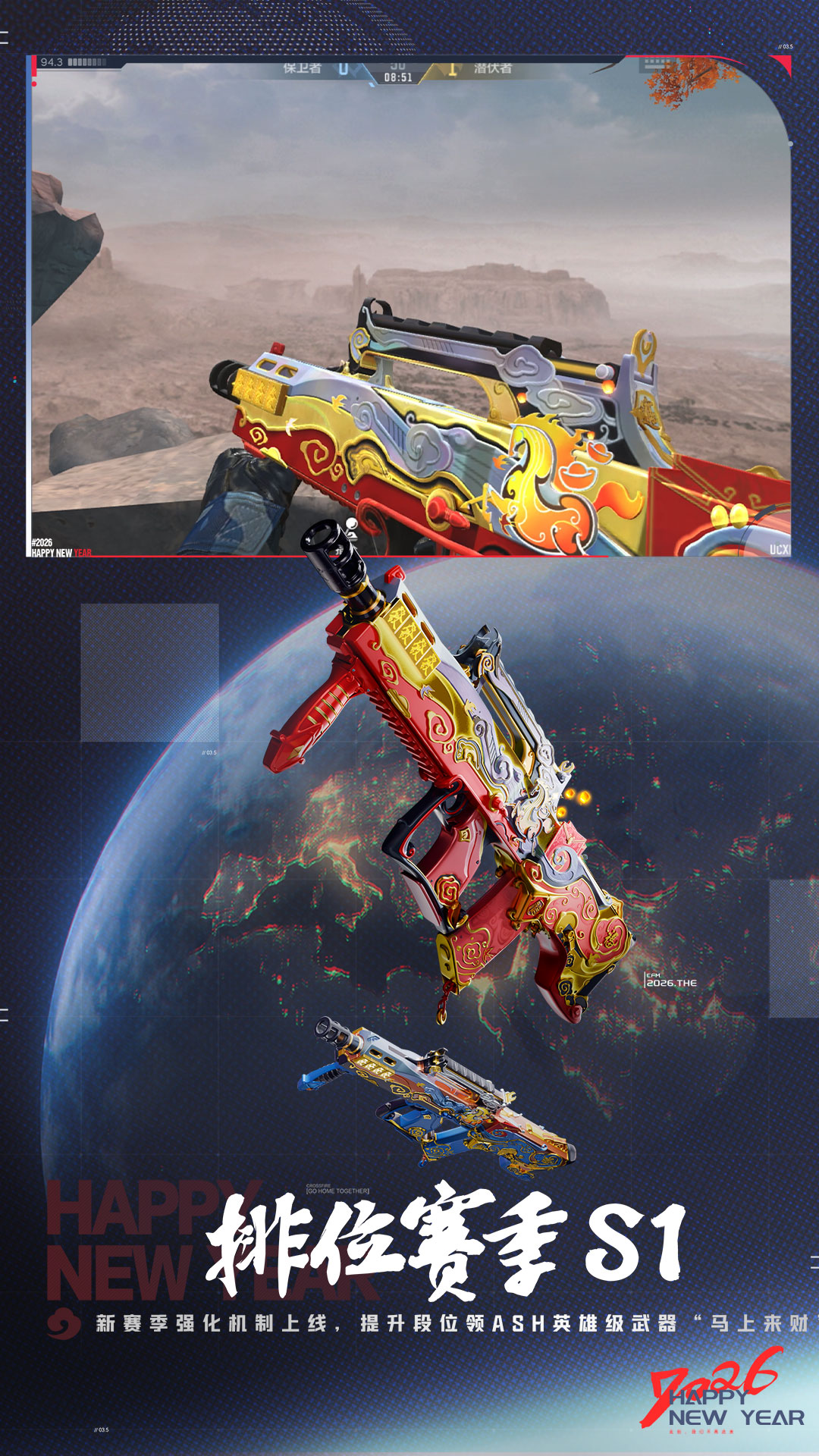 全新流浪地球联动玩法上线!新地图、新机制,赢取专属奖励电磁肌肉手臂!更有马年限定焕新贺岁地图携惊喜红包来袭、生化追击全新双阵营BUFF、首款王者级P90-雷暴王者上架典藏飞行棋、全新武器QBZ97-智控天眼、排位武器Ash-马上来财及赛季强化版等更多惊喜,等你来解锁!