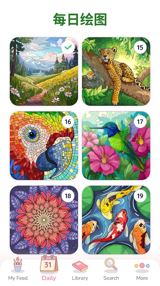 本游戏中超过 40,000 张的图片都能免费游玩。我们坚信,每个人都值得无需花钱,就能享受高品质且启发人心的按数字编号着色内容。