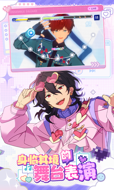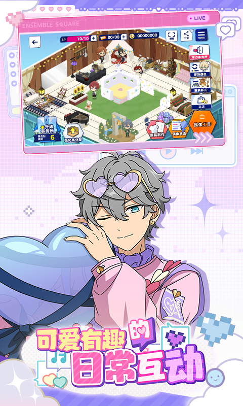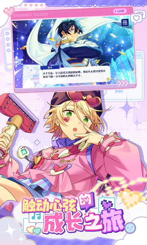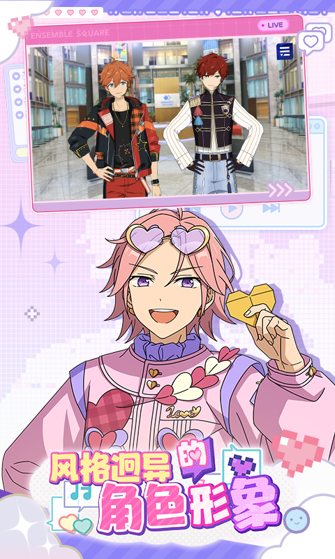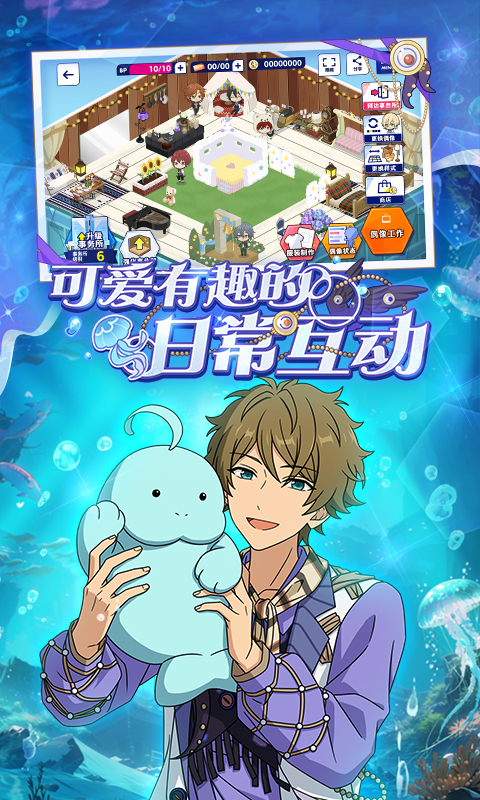 在《偶像梦幻祭2》的全新故事中, 49位风格各异的美少年组成了14个高颜值组合各具特色的组合,充分满足了不同玩家的喜好。匠心独运的3D音乐画面,精彩的游戏剧情,超豪华的声优阵容,鲜活生动的偶像日常,全方位展示了“偶像们的一切”,带来与众不同的沉浸式体验!
