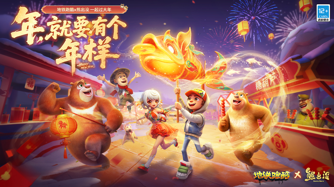 熊熊袭来,陪你一起过新年!熊出没经典角色光头强、熊大、熊二、吉吉国王、天才威加入春节庙会,更有神秘联动角色大年初一与电影同步现身地铁跑酷!联动角色使用喷气背包时,可以解锁限定蜂蜜罐喷气背包!联动挖宝活动“寻宝狗熊岭”火热开启,用锤子敲开隐藏宝物、点亮狗熊岭地图,熊出没联动限定角色天才威等你来拿!