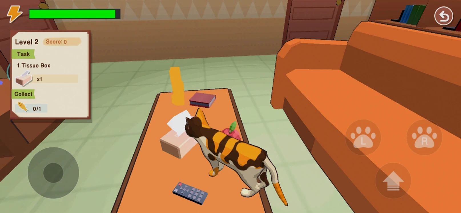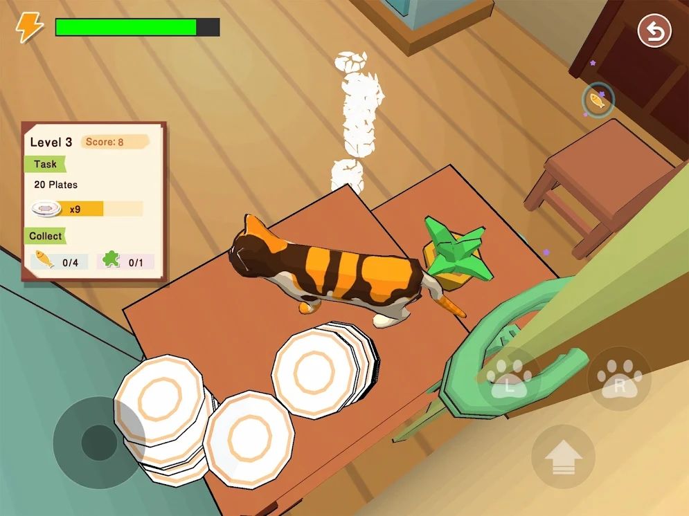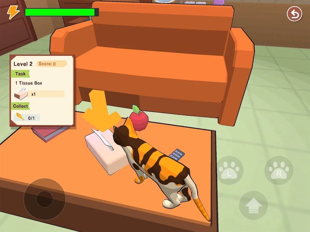 - 用右手控制猫爪子跳跃。在屏幕上按手指并拖动以移动相机。