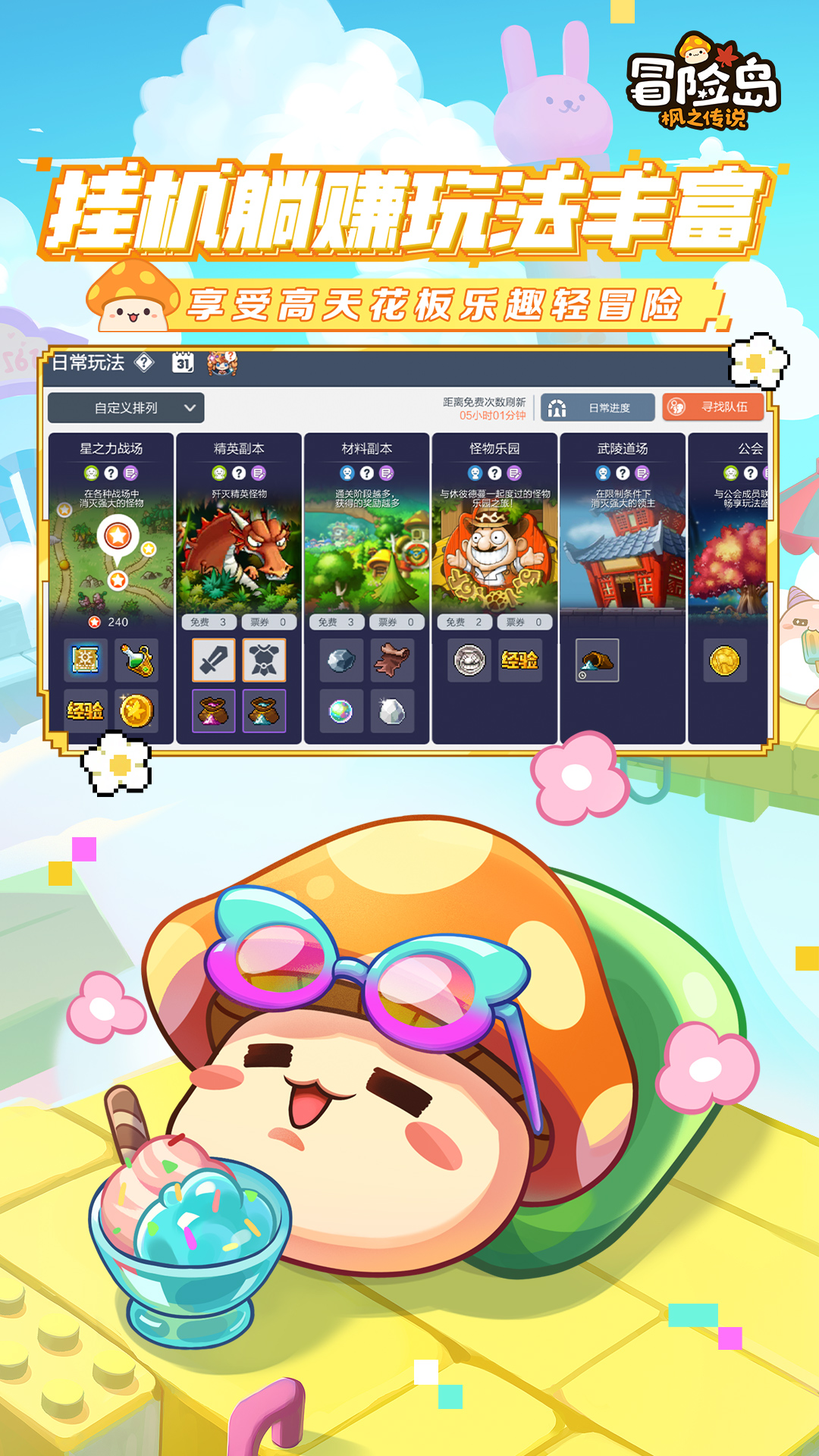 特有的挂机功能解放双手,省去手动升级漫漫长路的烦恼!最大程度降低苦苦升级的枯燥感,让成长更加简单,给予岛民轻松的养成体验!