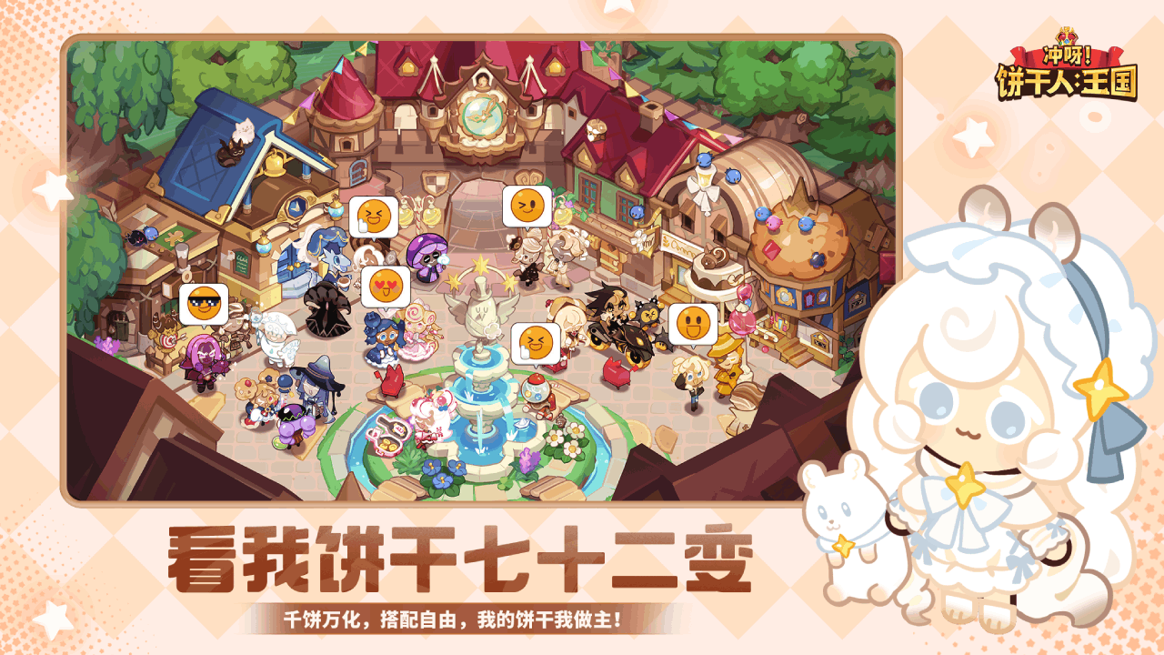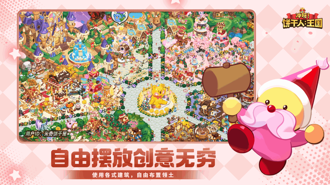 勇敢饼干逃出烤箱,饼干人王国初落成!在王国中不仅有丰富的生产建筑,完备的生产玩法,还有各色的主题装饰,支持高自由度的摆放装扮,打造出风格迥异的王国风景。