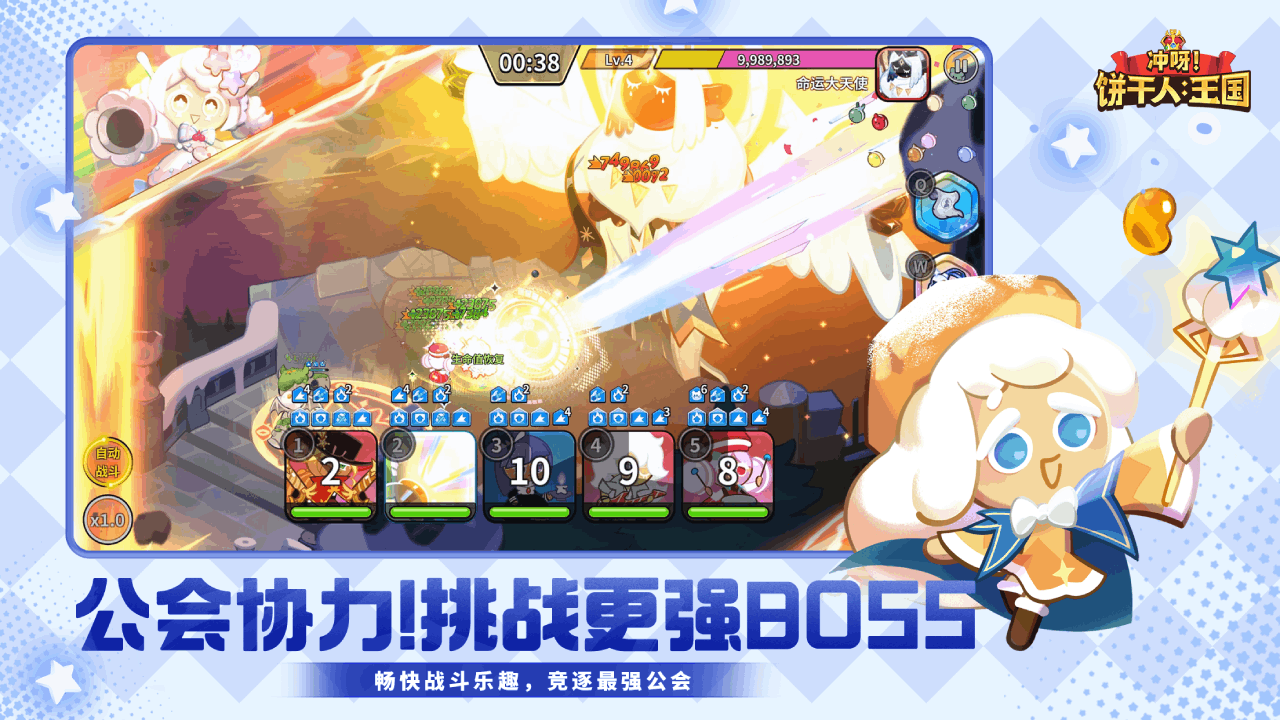 《冲呀!饼干人:王国》是一款结合模拟经营玩法元素的卡牌战斗手游,主要讲述在传说中的面包大陆上,勇敢的饼干们逃出魔女的烤箱,逐渐聚集伙伴,携手创建富饶又美丽的饼干王国的故事。