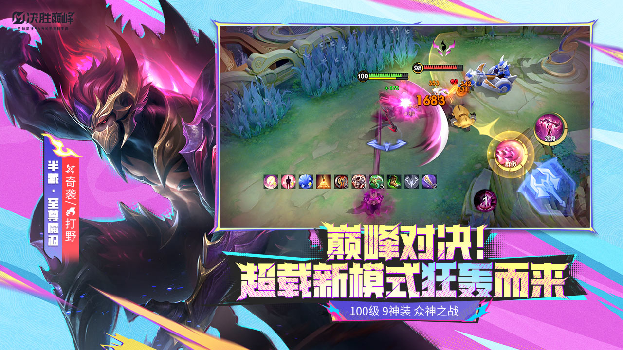 《决胜巅峰》是一款全新5v5畅爽竞技手游。数十位原创英雄自由选择,全新技能机制助你超神!极简操作、公平对决、快速匹配、激烈战斗!花式开团、说干就干,一局上手、三局开秀!经典MOBA玩法配以全新社交系统,不管是新手还是高手,都能找到属于自已的游戏乐趣。说不定还会遇到喜欢的明星网红哦~