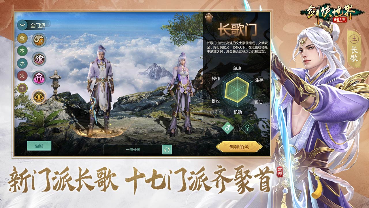 1、 新门派【长歌】:全新门派「长歌」上线,17大门派齐聚;
