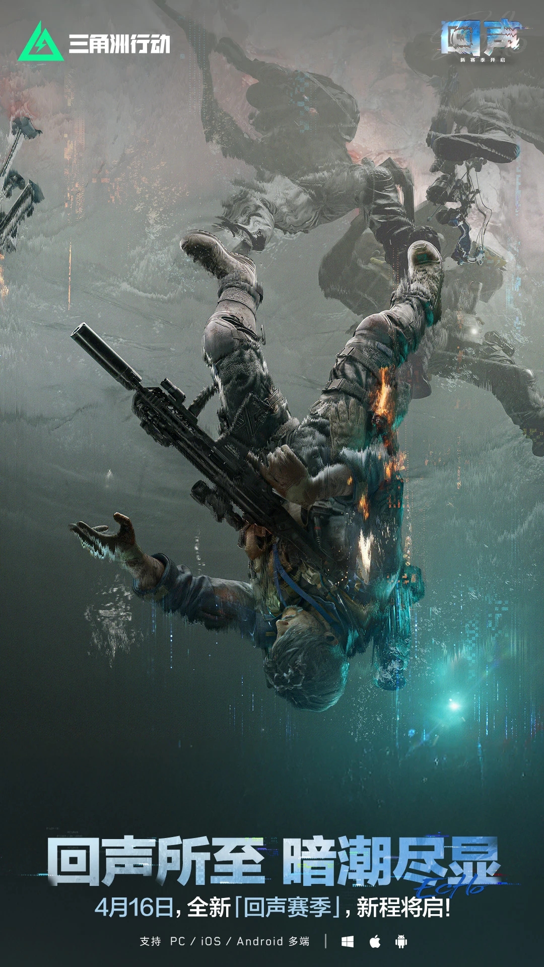 《三角洲行动》全新赛季“回声”4月16日正式上线!新模式、新玩法、新地图、新干员等多项更新,带来超越以往的战斗体验!还有海量优化内容,欢迎干员们前来体验! 烽火地带全新模式「烽火挑战」、烽火地带全新跑酷玩法「阿萨拉传说:大师遗踪」、烽火地带全新体验「埋宝赠礼」、烽火地带零号大坝新内容、全面战场全新地图「乌姆斯运河」、全新侦察型干员「回响」即将跟随新版本到来。此外,全新武器「M82狙击步枪」、「AR-57突击步枪」及更多赛季配件等也将在新赛季加入战场。 新赛季通行证、新曼德尔砖、多项战斗系统和系统优化也将同步上线。回声所至,暗潮尽显。4月16日,全新回声赛季,新程将启。