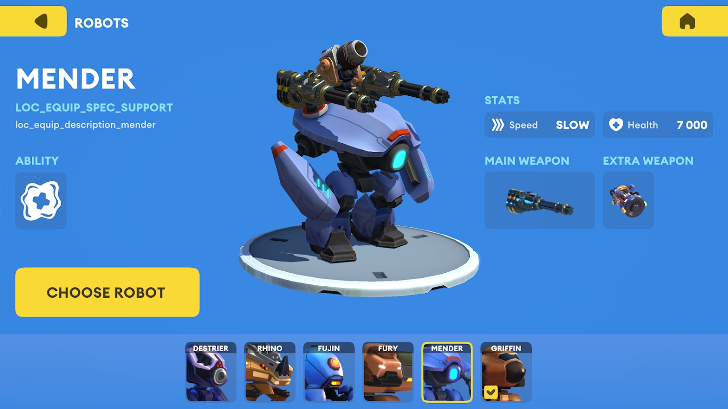 - 武器!每个很酷的机器人都需要一定的火力。找到适合您的游戏风格的最佳组合,并向他们展示大枪的重要性