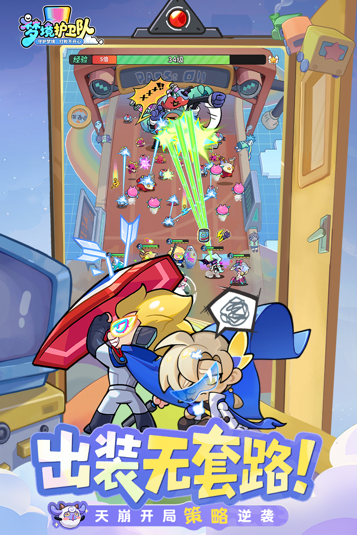《梦境护卫队》是一款融合了Roguelike与塔防的割草休闲游戏。游戏以“梦境世界”为蓝本,以“守护梦想”为主题,创造出了一个复古与未来并存的世界。对局融合了休闲游戏随开随玩的趣味性、割草游戏满屏杀敌的爽感以及塔防游戏策略的紧张刺激。战斗时不同种类的怪物会从地图中袭来,不同职业梦灵与天赋可以随意搭配,充满无限可能。