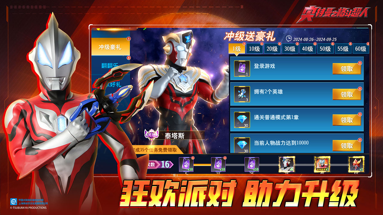 限时福利登陆领取高级召唤券,活动期间全区关卡掉落金币翻倍,参与活动更可以获取传说奥特曼