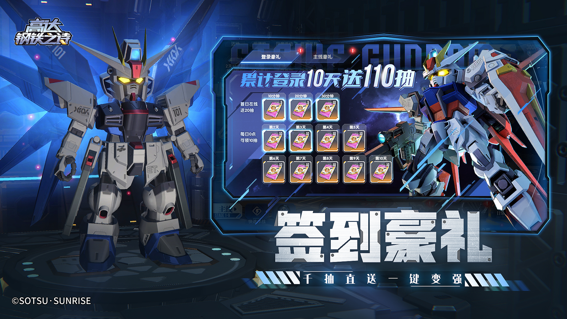 全机体登录即领,开服千抽直送! 各位高达粉丝们好,《高达钢铁之诗》是一款由万代南梦宫正版授权的3D高达手游。你将作为一名指挥官在游戏中组建自己的专属战队,搜集培养自己心仪的机体,灵活搭配机体阵容,以战术扭转战局,和其他指挥官一决高下!争夺“王牌指挥官”的称号!