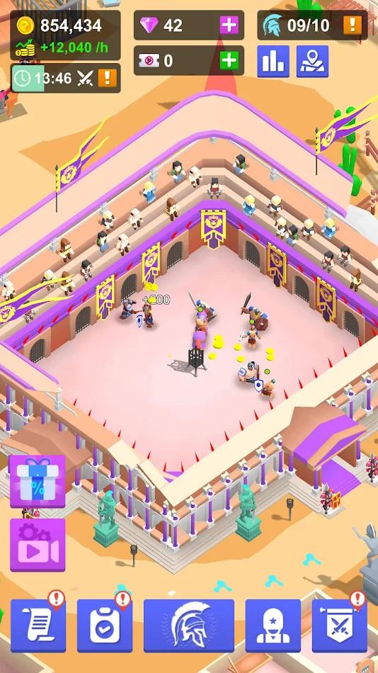 欢迎来到闲置角斗士竞技场,在这里您可以体验管理罗马角斗士竞技场的快感。捕获奴隶,训练他们,装备他们,并观看他们为了荣耀和利益而进行史诗般的决斗。升级你的角斗士,解锁新的竞技场,面对更强大的对手,并成为角斗士世界的终极冠军。不仅可以从胜利的战斗中获得收入,还可以从奴隶磨练技能的定期训练中获得收入。您准备好建立自己的帝国并成为闲置角斗士竞技场的传奇了吗?