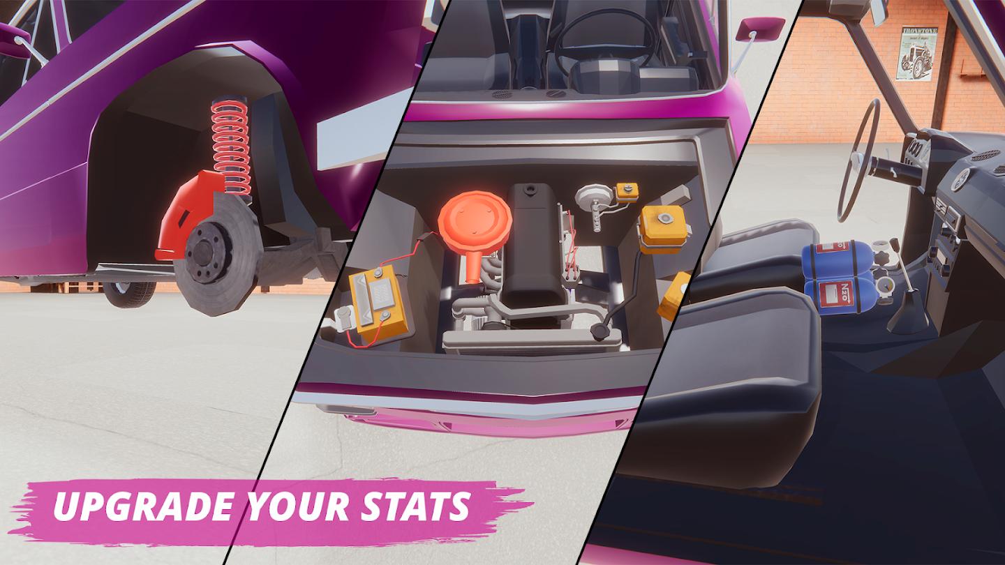 进入车库,拿起工具,组装车辆的每个部件——从发动机到车身,打造你的梦想之车。安装和升级活塞、曲轴、凸轮轴、飞轮等部件。调整悬架、外倾角、偏移和轮胎以提高抓地力 - 每个部分都会影响实际性能。享受逼真的 3D 机械体验,非常注重细节。