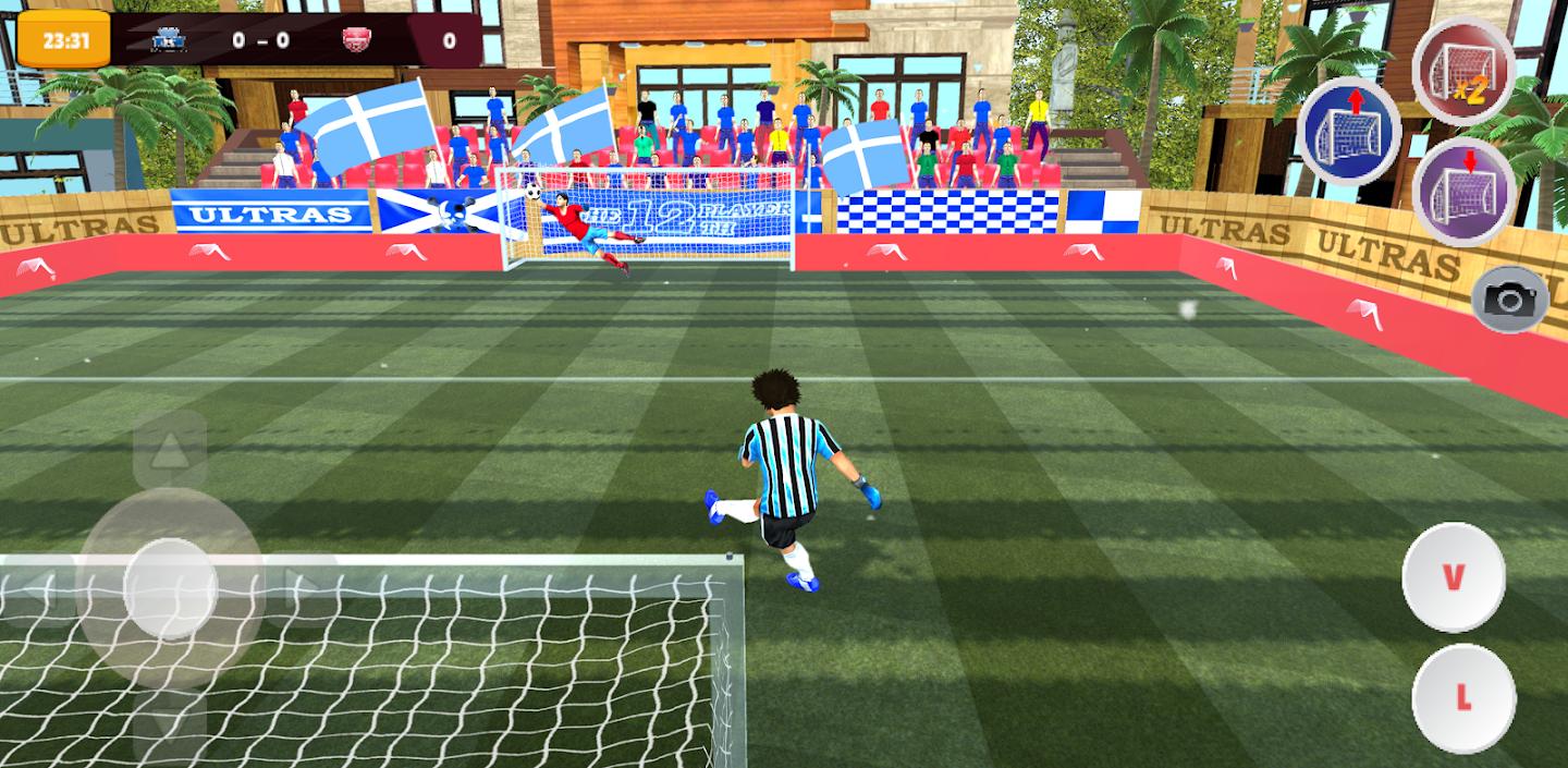 《守门员战争足球》是一款引人入胜的 1vs1 在线足球游戏,在游戏中,您同时是守门员和前锋。将这两个角色高水平地结合起来并非易事,需要任何人都不曾拥有的独特技能。你可以成为第一!参加足球 锦标赛,向对手炫耀您的智慧!与您的朋友在线玩。像足球前锋一样精准,像守门员一样敏捷。 射门、扑救、移动、改变方向并选择最合适的时机进攻。在电脑和在线体验一种新型的足球比赛!