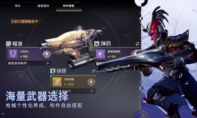 收集海量枪械,构建传奇军火库!通过材料升级与构件搭配实现个性化养成,利用词条和套装效果,打造终极配装。