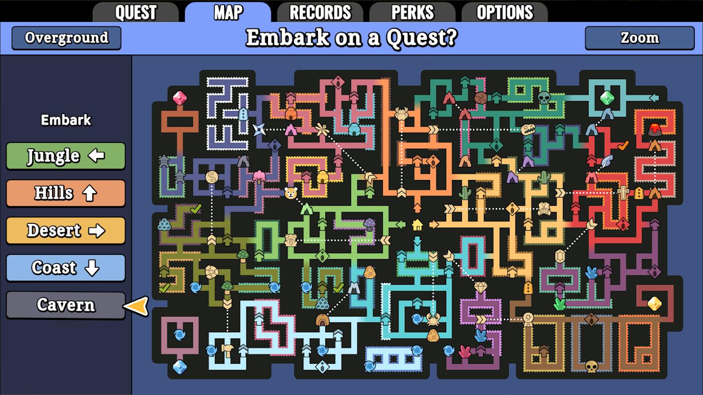 每次尝试时,穿过每个区域的最佳路线都会改变。因此,扩展和查阅地图将为您带来优势。要到达岛屿的最深处,你需要打开大门,清除地牢并解锁捷径。
