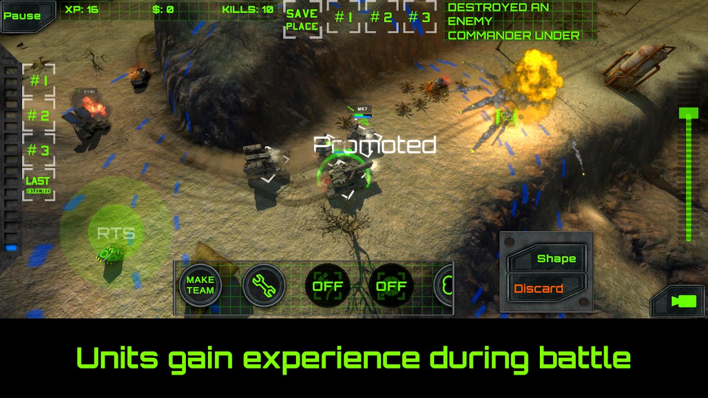 这是一款融合了即时战略 (RTS) 与第三人称射击 (TPS) 动作的后末日离线策略游戏。建造基地、指挥军队,参与战术战斗——无广告、无微交易,只有纯粹的策略和动作战争。