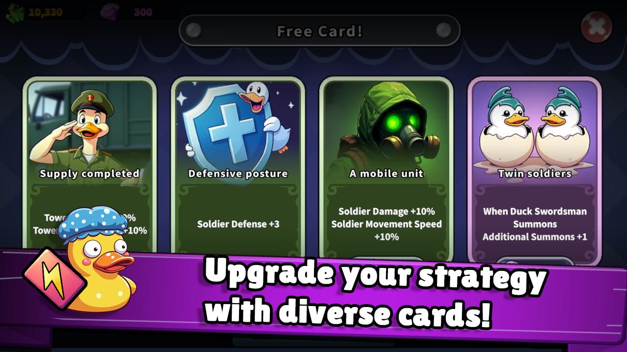 - 使用比任何士兵都强大的英雄鸭子赢得战斗!