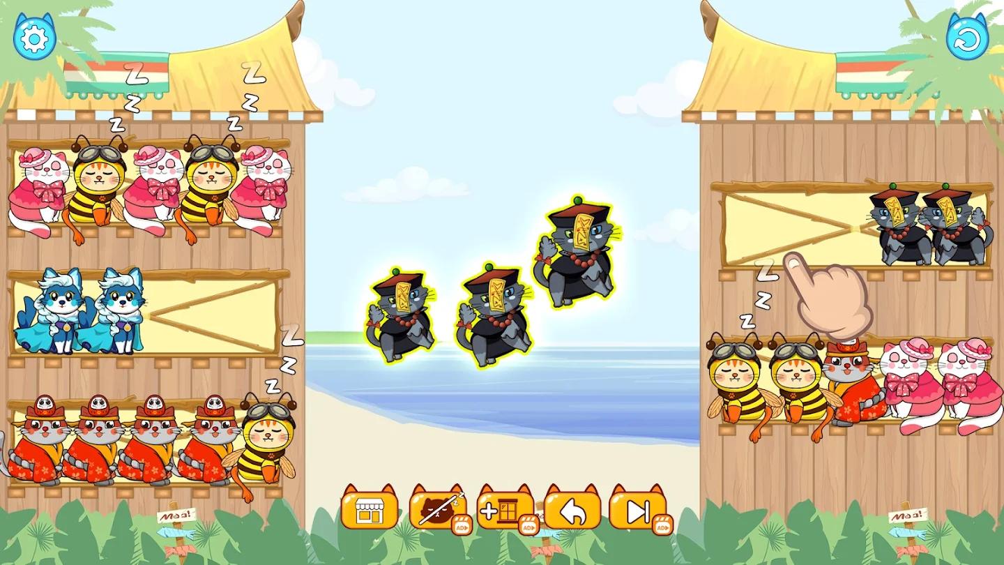 猫咪分类拼图:彩色游戏玩法简单易上手。你只需将猫咪按相同的颜色排列,等到所有猫咪都颜色相同后跳开,你就赢了。这款猫咪颜色排序益智游戏将以轻松有趣的方式锻炼你的大脑。