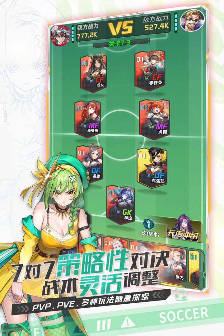 每位美少女球员均拥有精美立绘,释放必杀技时更有酷炫全屏大招动画!感受足球与二次元碰撞的超动态视觉冲击,每一场比赛都如同观赏热血动漫!