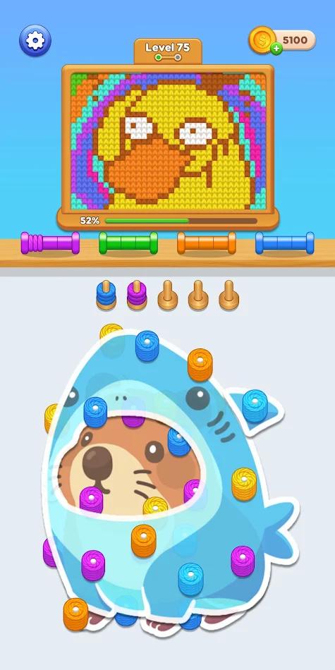 - 匹配三根相同颜色的线头,提升您的羊毛涂色进度。