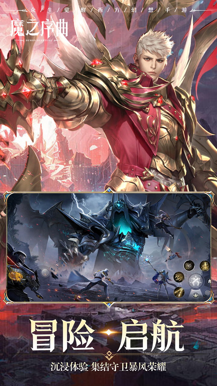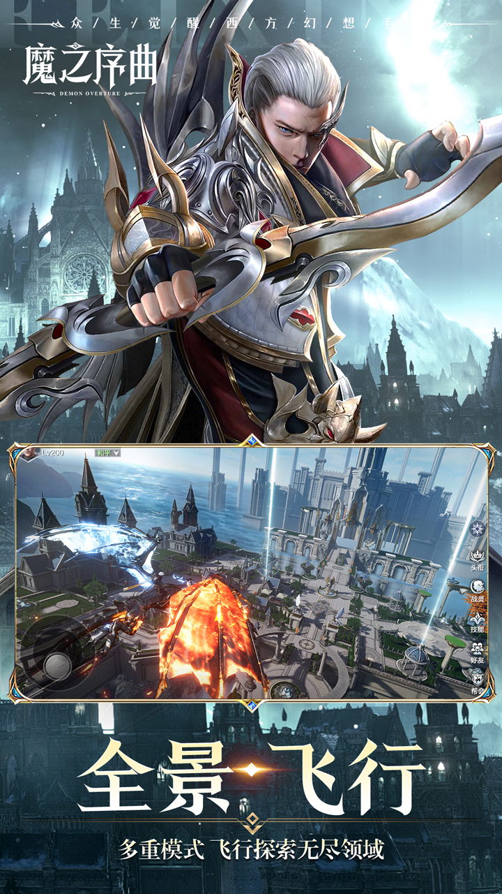 《魔之序曲》是一款西方魔幻题材的MMORPG手游。3D次世代旗舰画质,360度自由视角,DIY个性外显,昼夜实时光影渲染,重新定义唯美西方幻想大世界。变身天神进行战斗,与上古神明协同作战,在跨服大战场,体验极限刺激的屠魔猎龙之战。当暗黑降临、魔龙复苏,玩家将扮演被古神指引的勇士,打开探索多元宇宙的魔晶之门。