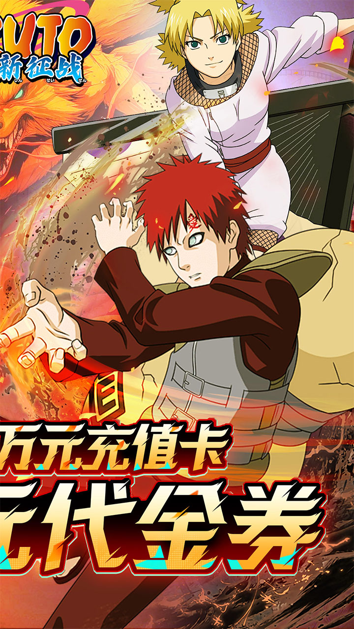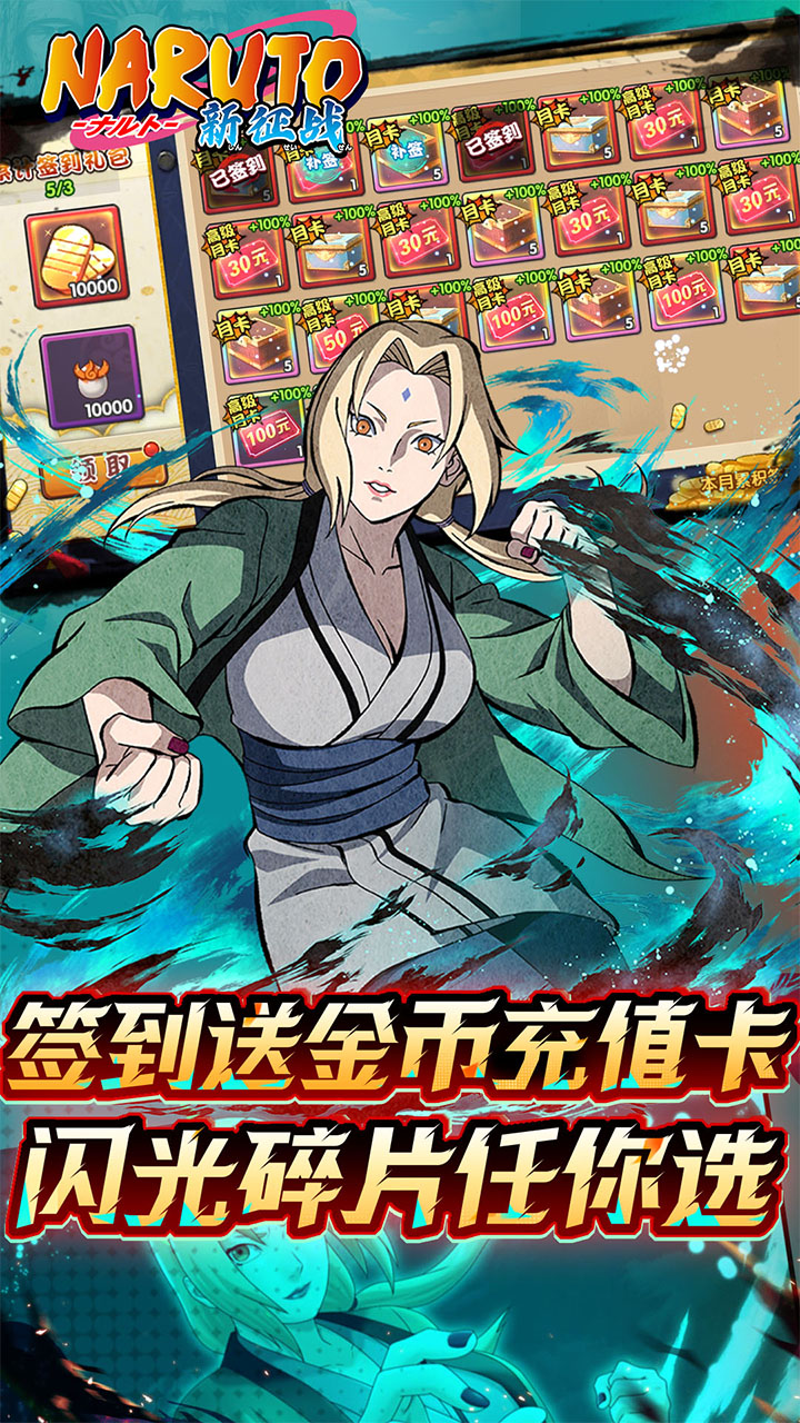 漩涡鸣人碎片*30、100元充值卡*1、铜币*100万