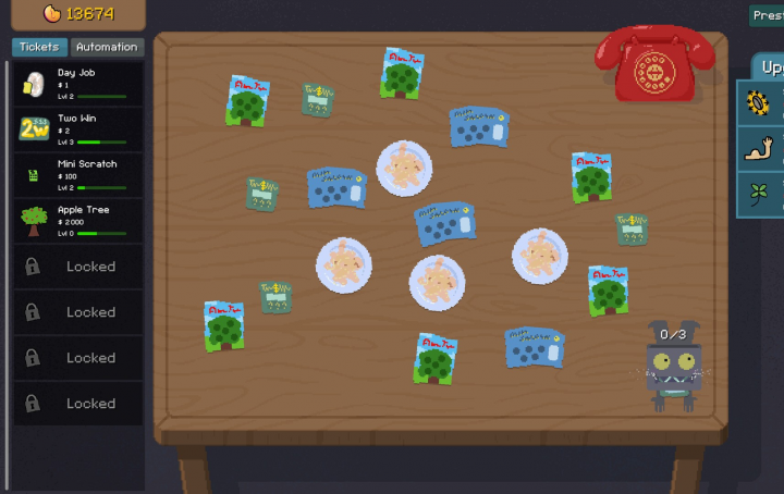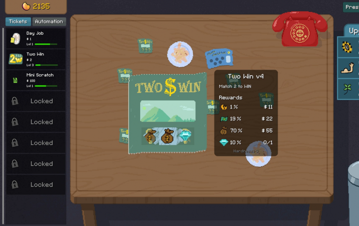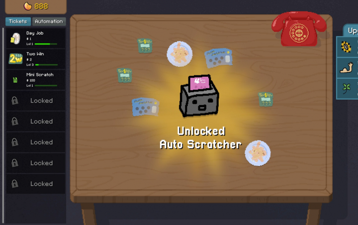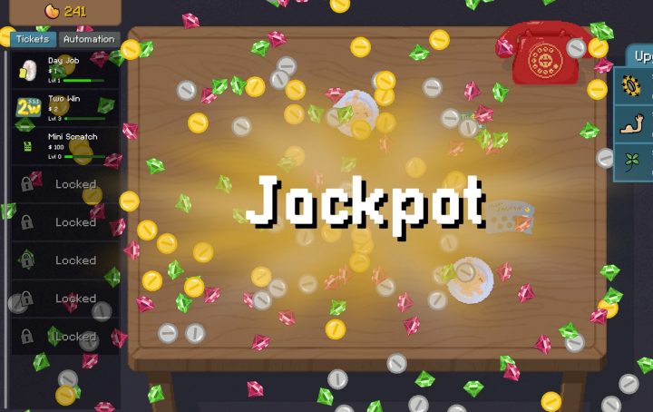 《刮奖大师》是一款以 “刮刮卡模拟 + 养成经营” 为核心的休闲游戏,主打 “解压刮卡” 与 “策略博弈” 双重体验。玩家通过购买十余种主题刮刮卡(如稳定收益的 “Day Job” 系列或高风险高回报的 “Two Win” 系列),在手动刮卡的解压乐趣与自动刮卡器的全自动收益中自由切换。核心玩法融合运气与策略:需权衡直接刮开大奖或保留特殊符号组合,通过升级 “Scratch Luck” 幸运值、解锁双被动收益(自动刮卡 + Apple Tree)提升中奖效率。局外可通过收集钻石完成重生挑战,选择永久强化项目(如初始收益提升、解锁高级刮卡权限),逐步构筑专属财富帝国。游戏支持离线运行,轻量化设计让玩家随时随地畅享 “指尖暴富” 的快感,在 “稳扎稳打” 与 “孤注一掷” 的博弈中体验刮卡成瘾的乐趣。