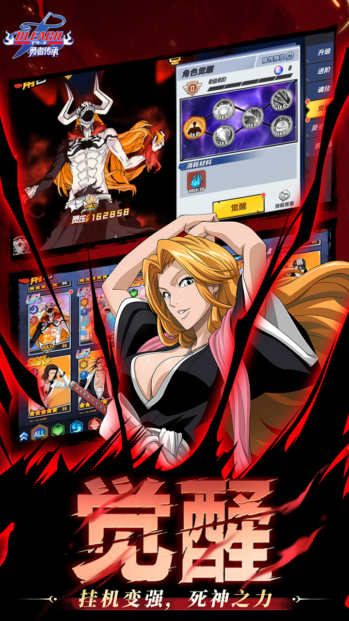 一款以原作中的剧情脉络为核心,对人物、场景进行精细还原,对角色能力、游戏玩法进行深度定制,经典呈现玩家难以忘怀的死神世界。在游戏中,玩家以主角的身份与视角面对强敌、收集资源、磨练技巧,培养自己的最强死神。人气角色大集结,黑崎一护、朽木白哉、朽木露琪亚等数位死神人气角色登场,专属定制技能,每一位登场角色都将给你:“没错,这就是他(她)的感觉!"。热血沸腾的梦幻对决到放置类游戏轻松休闲,重燃战斗之魂,体验热血酣畅的灵压对决!