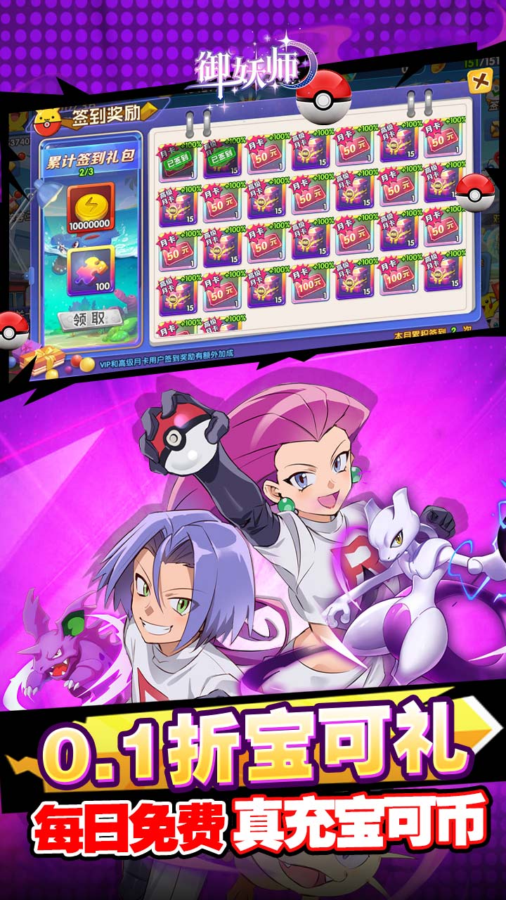 2、0.1折月卡礼:月卡仅需1宝可币,白嫖千倍返利!