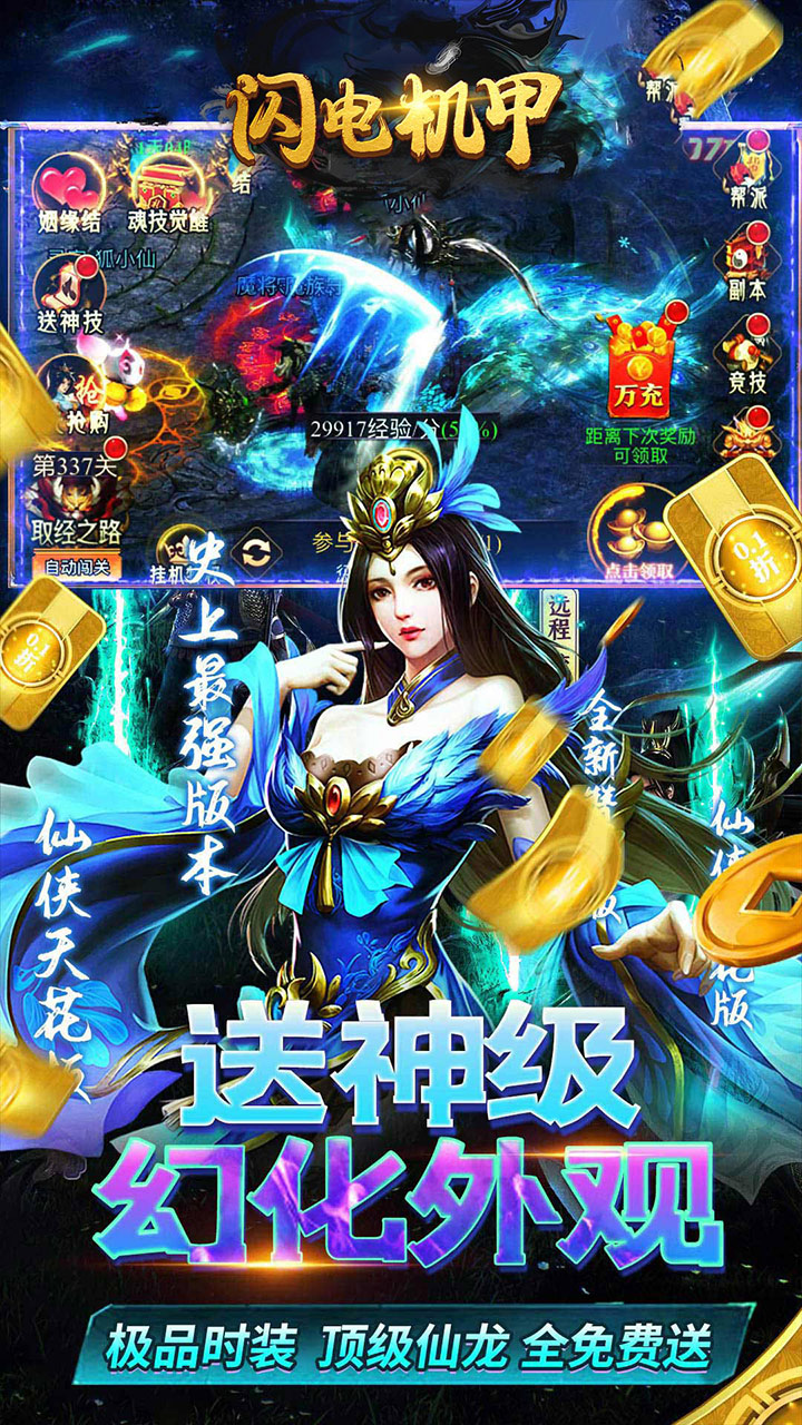 开局送VIP7+直升50级+50万金币3万钻石+648充值资源拿到手软