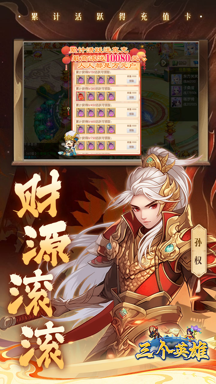 一款纯2D卡通写实风网络游戏,以经典《三国》为蓝本,为您呈现精美如画的奇幻世界!在这里,您将遇见造型独特的英雄,体验经典多样的玩法,享受轻松愉快的冒险旅程。我们鼓励玩家团结协作,在健康娱乐的同时,深入感受三国故事的魅力与游戏的深度乐趣。