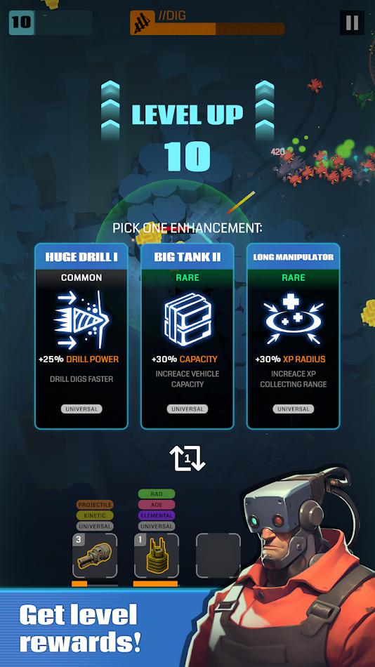 ⚙️ 尝试各种钻机——每种都有独特的功能——并研究新技术来提升你的效率和火力。更聪明地挖掘,更努力地战斗,更快地升级!